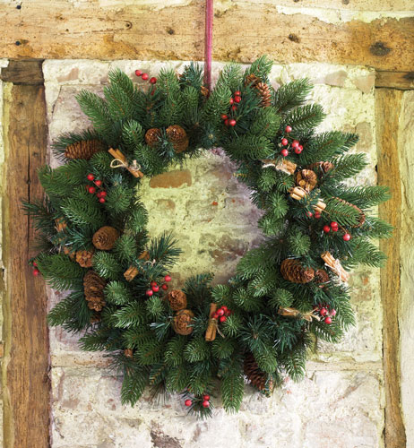 Cea mai populara ghirlanda este, fara urma de indoiala, cea realizata din crengute de brad. Prinde cateva crengi cu ajutorul unei sfori sau al unei sarme si decoreaz-o cu conuri de brad, bete de scortisoara si funde rosii sau aurii, ca accent de culoare. Unul din avantejele acestei ghirlande este faptul ca te vei putea bucura de mirosul proaspat de brad.Foto: Tesco Christmas 2010