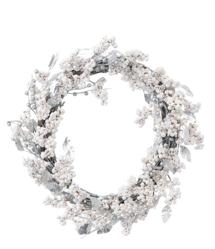 Albul absolut al zapezii se poate regasi si in ghirlanda ta decorativa. Pentru aceasta, ai nevoie de fructe salbatice, pe care le vei vopsi cu un spray alb sau argintiu. Ii poti adauga margele, pe care le prinzi cu sarma, sau flori uscate, pe care le vei vopsi, la randul lor.Foto: HomeSense