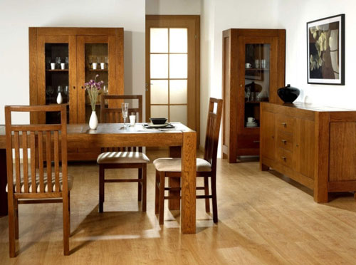 Mobila sufragerie TORRA - Ansamblu mobila sufragerie din PAL furniruit cu stejar, compus din: - Bufet 2 usi, 3 sertare, L200xA50xH85 cm