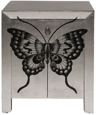 Cabinet Butterfly 2-Doors - Comoda din lemn de plop, cu finisaj argintiu. Pret: 1.448 lei.KARE