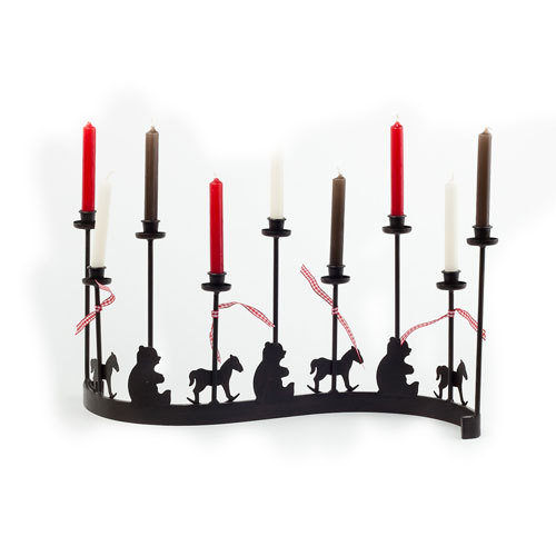 Suport de lumanari - Suport de lumanari realizat din fier, cu decoratiuni elegante cu ursuleti si caluti. Forma curbata a suportului ofera originalitate designului. Pret: 130 lei.wikifab