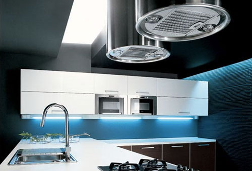 Sinetika - by Arrital Cucine, stejar inchis cu alb lacuit lucios, o combinatie evergreen, eleganta, pentru zona de bucatarie. Produs disponibil prin intermediul Morphoza-atelier de interioare.