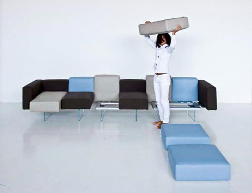 Air - colectie de canapele Lago, cu sustinere pe picioare de sticla, modular si usor transformabil. Produs Morphoza-atelier de interioare.