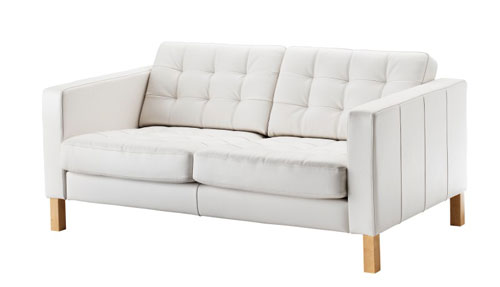 KARLSTAD - canapea 2 locuri capitonat/Grann alb. Piele moale, rezistenta la uzura si usor de intretinut; care "imbatraneste" frumos. Pernele petru sezut umplute cu spuma poliuretanica cu grad inalt de elasticitate si umplutura din fibre de poliester ofera confort optim. Pret: 3.249 lei.IKEA