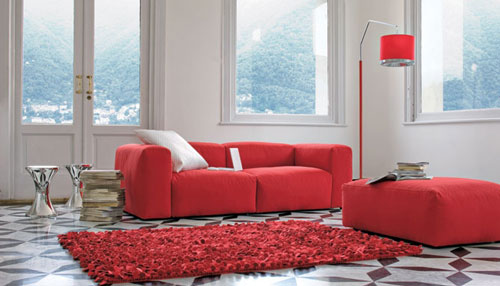 Feeling - colectie bazata pe un design modern, cu brate si perne voluminoase – realizate din poliuretan, si tapisate cu materiale textile sau piele. Colectia propune piese de mobilier individuale, fotolii, canapele de diferite dimensiuni; precum si piese modulare. Compozitia propusa include canapea de 2 locuri 230 cm lungime si taburet; ambele tapisate cu material textil. Pret: la cerere. Produs in Italia.In exclusivitate prin Interior Store