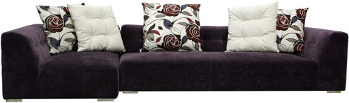 Feeling - Coltar cu brat stanga sau dreapta, 5 perne decor. Dimensiuni: 316x98/134x60 H cm, stofa mov. Pret: la cerere.Site-ul Kudika.ro este creat si administrat de SC Internet Corp SRL.