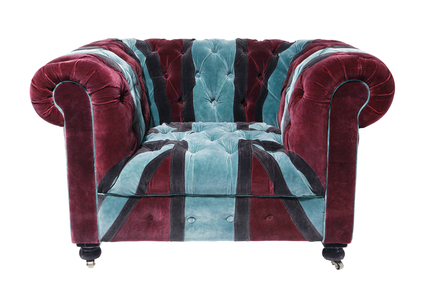 Armchair Oxford Flag - Fotoliu cu tapiserie din velur, cu influente britanice. Pret: 7.696 lei.KARE