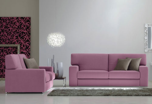 Dedalo - canapea cu design contemporan, linii drepte, simple, cu husa de un roz pal, ce se potriveste cu diverse nuante de gri. Produs Morphoza-atelier de interioare.