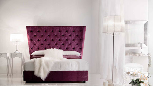 Butterfly - pat cu husa de catifea roz inchis, in design baroc, glam, cu spatar inalt, impozant si rama imbracata. Modelul este o piesa de mobilier vedeta, atat prin forma cat si prin culoarea sa, iar o combinatie cu piese de mobilier albe il pune cel mai bine in evidenta. Produs Morphoza-atelier de interioare.