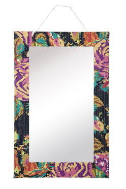 Mirror Rose 100x65 - Oglinda cu rama cu model floral, din lemn de mango, tapisata. Pret: 1.316 lei.KARE