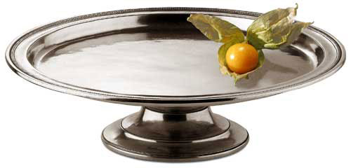 Toscana - Platou cu picior, realizat din aliaj metalic, decorat pe margini. Ideal pentru servirea desertului sau a fructelor. Diam. 28 x 8.5 cm. Pret: la cerere. Produs in ItaliaIn exclusivitate prin Interior Store