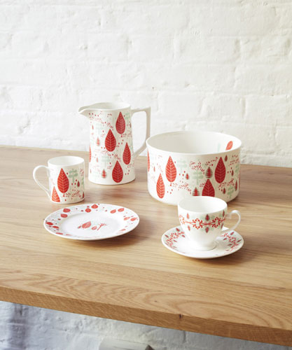 Sprig - Farfurie, bol pentru salata, cana, ceasca si carafa din portelan, semnate Donna Wilson. Pret: la cerere.Intro