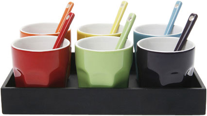 Mug Daily Colore Tray (6/Set) - Set de 6 cani diverse culori si linguri. Setul contine si tava. Pret: 63 lei.KARE