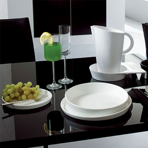 Caraffa - Set continand o carafa, o tavita pentru carafe si 3 tavi rotunde. Toate din ceramica vopsita lucios. Pret: 136 euro fara T.V.A.casaitalia