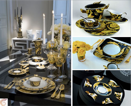 Vanity - set de vesela, Versace design for Rosenthal, din portelan decorat opulent in negru si auriu, un must have pentru orice fan al brandului care vorbeste in limbaj baroc despre rafinament. Produse din portofoliul Morphoza-atelier de interioare.