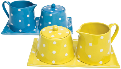 Milk & Sugar Punto (3-tlg) Assorted - Set in buline, in diverse culori, alcatuit din tava, zaharnita si vas pentru lapte. Pret: 83 lei.KARE