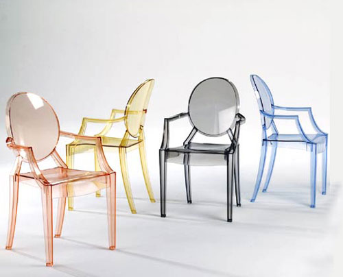 Louis Ghost - Scaun din policarbonat transparent si colorat. Dimensiuni: 54x55x94 cm. Pret: intre 195 si 237 euro (in functie culoare).Calligaris prin casaitalia