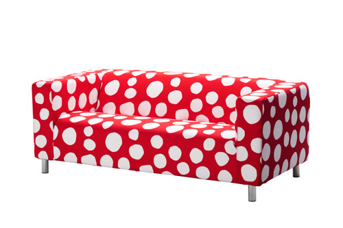 KLIPPAN - canapea 2 locuri, husa detasabila Dottevik 100% bumbac, rosu cu buline albe. Pret: 619 lei.IKEA