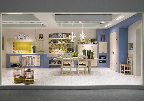Iris - O bucatarie realizata din lemn de castan furniruit si lacuit in diferite culori, ce imbina perfect eleganta cu designul de influente country. Pret: la cerere. Produs in Italia.In exclusivitate prin Interior Store