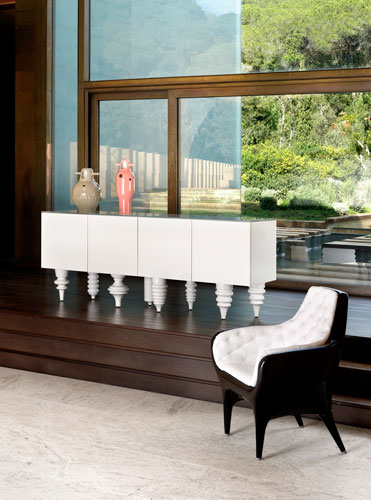 Showtime - Design: Jaime Hayon pentru BD Barcelona. Lansat in 2006 la Milano, scaunul Showtime face parte din colectia cu acelasi nume semnata de intrigantul personaj al designului modern spaniol, Jaime Hayon. Seria de scaune a fost creata pentru brandul BD Barcelona Design si include mai multe finisaje. Aceasta colaborare de succes dintre designer si un veteran producator a dat nastere unei colectii cu o capacitate incredibila de adaptare si o personalitate unica, o colectie in care plasticul se imbina perfect cu tapiseria, iar lemnul lacuit se contopeste cu ceramica fina. Materiale folosite: polietilena, tapitat cu piele capitonata si lacuit. Pret: 2784 euro fara TVAIntro