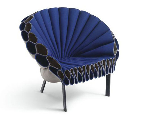 Peacock - realizat in stilul care castiga toti mai multi fani - Felt Furniture - fotoliul Cappellini creaza o suprafata de sedere din falduri de tesatura, placute ochiului cat si atingerii. Printr-o metoda neconventionala de tapitare, fotoliul "Paun" atrage atentia prin tehnica sa moderna de "cutting edge". Morphoza-atelier de interioare