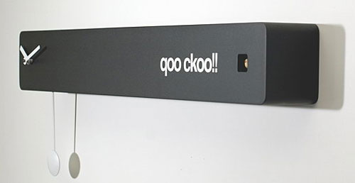 q02 - Un ceas cu cuc si cu pendul de la Progetti nu va semana niciodata cu vechile modele de ceas cu cuc sau cu pendul, pentru ca imaginatia nu are limite si trebuie exploatata. Indrazneste si tu sa fii original. Pret: la cerere. Morphoza-atelier de interioare