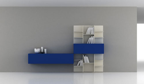 Combinatii de alb-gri-albastru - ideale in living-urile moderne, tineresti.