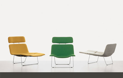 Spring - Design: Erwan Bouroullec pentru Cappellini. Un mic fotoliu cu baza din otel inoxidabil satinat, structura din poliuretan rigid si umplutura din spuma poliuretanica. Husa nedetasabila poate fi din material textil sau piele. Se pot atasa tetiere ajustabile sau support pentru picioare. Pret: pornind de la 1.231 euro fara TVA.Produs disponibil prin Intro.