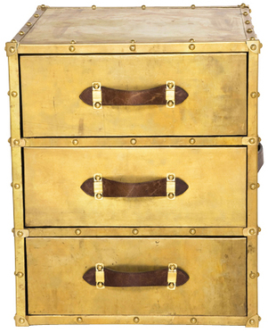 Chest of 3 Drawers Cruzada Brass - Dulap din alama, otel si MDF, prevazut cu manere din piele de vita. Pret: 4.296 lei.Site-ul Kudika.ro este creat si administrat de SC Internet Corp SRL.