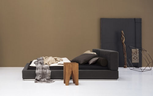 Academy Rollo - pat capitonat pe tesatura by Twils, cu perna rola, care dubleaza tetiera pentru un plus de confort. Pret: la cerere. Morphoza-atelier de interioare