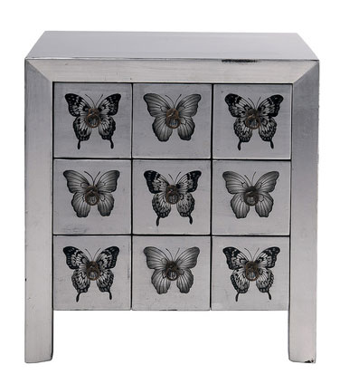 Commode Butterfly, 9 Drawer - Comoda argintie din lemn de plop, MDF si cupru. Pret: 1.415 lei.KARE