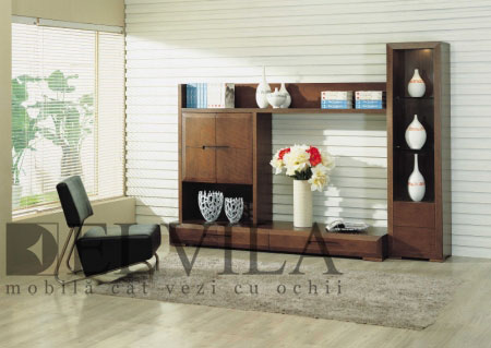 Biblioteca SPRUCE - Biblioteca MDF furniruit, L272xA60xH198 cm. Sistem de perete. Pret: 2.281 lei.Produs disponibil prin magazinele Elvila, www.elvila.ro