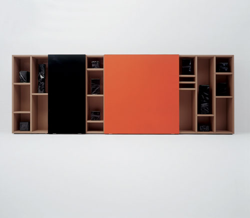 Sistema - Design: Studio Cappellini 2004 - Reprezinta o serie de comode ce pot crea compizitii potrivite atat pentru casa cat si pentru birou. Dulapurile sunt disponbile cu usi ce se deschid fie pe vertical, fie pe orizontala. Aceste dulapuri pot fi si combinate cu rafturi separate, placi si banci din aceeasi colectie Sistema, deorece sunt facut din aceleasi materiale si sunt disponibile in aceeasi gama de culori. Cappellini Sistema este caracterizat prin grosimea mica a componentelor sale, unele realizate dintr-un amestec de lemn solid, altele placate cu lemn si in combinatie cu aluminiu.Brand: Cappellini prin Intro
