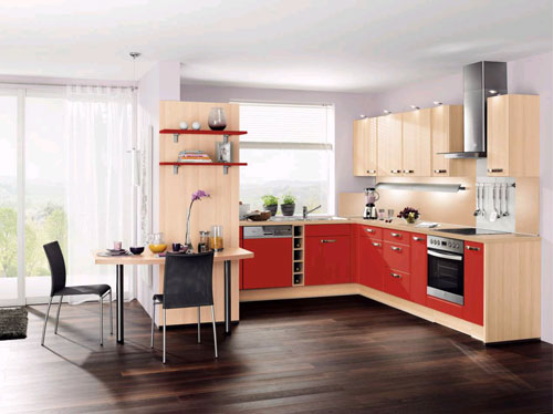 Salvia - varianta BASIC - de la 6.890 lei. Front Koralle ultralucios. Maner inox. Parte laterala, plinta si blat: platina. Nu sunt incluse aparatele electrocasnice si accesoriile.Nobilia prin kika
