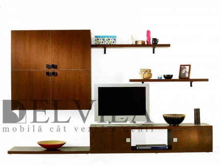 Biblioteca ALEXIA - Biblioteca din PAL melaminat, L275xA50xH150 cm. Sistem de perete. Pret: la cerere.Produs disponibil prin magazinele Elvila, www.elvila.ro