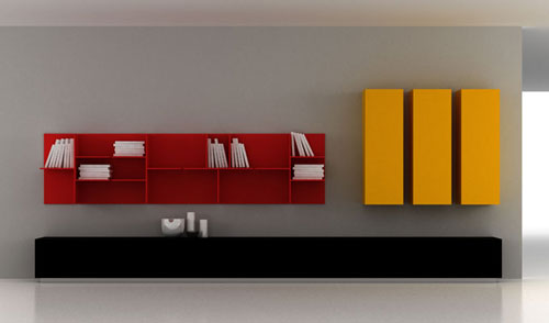 Domina - Mobilier pentru living, realizat din lemn cu finisaje lacuite mat sau lucios, disponibil intr-o mare varietate de culori. 480x42x210 cm. Pret: la cerere.