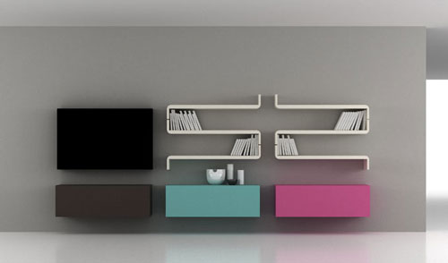 Domina - Mobilier pentru living, realizat din lemn cu finisaje lacuite mat sau lucios, disponibil intr-o mare varietate de culori. 480x42x210 cm. Pret: la cerere.In exclusivitate prin Interior Store