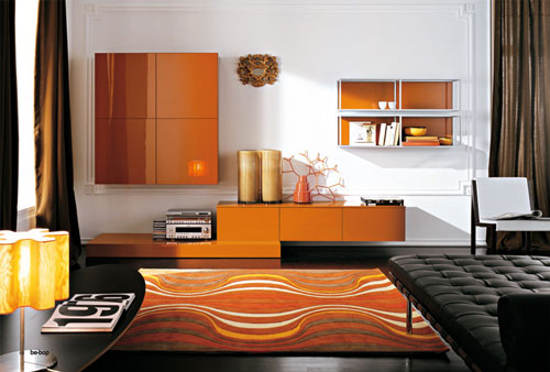 Domina - Mobilier modular pentru living, realizat din lemn cu finisaje lacuite mat sau lucios. 320x42x190 cm. Produs in Italia. Pret: la cerere.In exclusivitate prin Interior Store