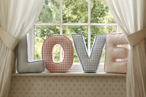 Inspirandu-se din stilul shabby chic, in ultima perioada am putut vedea o precadere pentru pernele decorative in forma de litere. Pentru ca decorul sa fie cat mai animat si sa capete o atmosfera primitoare, personalizata, iti recomandam sa folosesti perne cu imprimeuri diferite. Daca nu gasesti sau nu poti realiza unele in forma de litere, pe niste perne obisnuite, coase din diferite materiale literele respective. Patchwork-ul este in tendinte si invioreaza orice incapere. Pentru ca pernele sa fie cat mai vesele, coase literele cu ata intr-o culoare diferita. Foto: Jonny's Sister