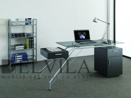Birou CT3305 A - Birou, L165xA65xH76 cm, blat sticla, corp negru, elemente metalice. Pret: 453 lei.Produs disponibil prin magazinele Elvila, www.elvila.ro
