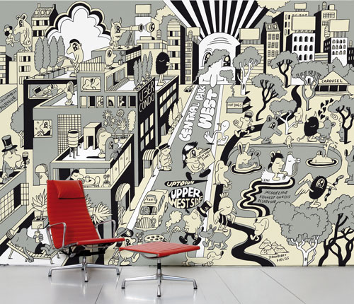 Upper West Side - Design: Jeremyville. Face parte din colectia de tapet de dimensiuni mari lansata de Domestic. Upper West Side este semnat original de designer si produs doar intr-o serie limitata de 100 de bucati pe an. Adu in casa ta propriul oras imaginar plin de creaturi simpatice. Dimensiuni: 372 x 300 cm. Brand: Domestic. Pret: 397 euro fara TVAIntro