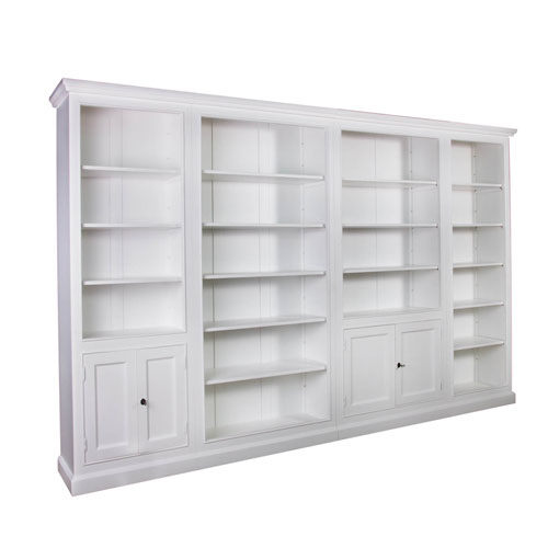 Biblioteca din lemn masiv de brad, finisat manual cu produse pe baza de apa si prietenoase cu mediul inconjurator. Modelul prezentat: Finisaj Alb. Dimensiuni: 75x38x211 & 100x38x211 & 100x38x211 & 75x38x211. Pret: 5.640 lei. Pretul afisat este pentru finisaje de baza: ceruire sau vopsire clasica in alb. wikifab.ro