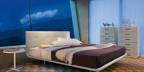 Alicante - Pat cu un design contamporan, ce imbina perfect simplitatea liniilor drepte cu eleganta formelor rotunjite si ale tapiseriilor din piele. Dimensiuni: 1680 x 2060 x 724 mm. Pret de la 1.099 euro + TVA.In exclusivitate prin Interior Store
