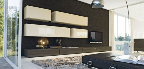 Concept CG17 - compozitie de living, Doimo Design, realizata din MDF lacuit lucios. Mobilierul este compus dintr-o zona de corpuri suspendate si o zona de corpuri joase, ambele fara manere, deschidere prin sistem push&pull. Morphoza - atelier de interioare