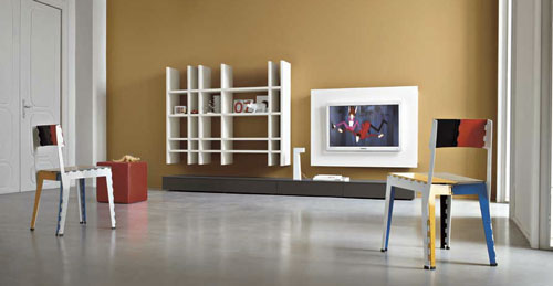 Slim - biblioteca Dall'Agnese, cu structura realizata din MDF lacuit lucios sau mat. Morphoza - atelier de interioare