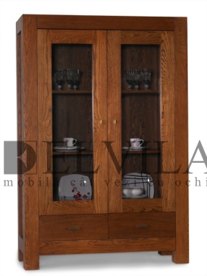 Vitrina 2 usi si 2 sertare TORRA - vitrina 2 usi si 2 sertare, din PAL furniruit cu stejar, L120xA50xH180 cm. Pret: 1.992 lei.Produs disponibil prin magazinele Elvila, www.elvila.ro