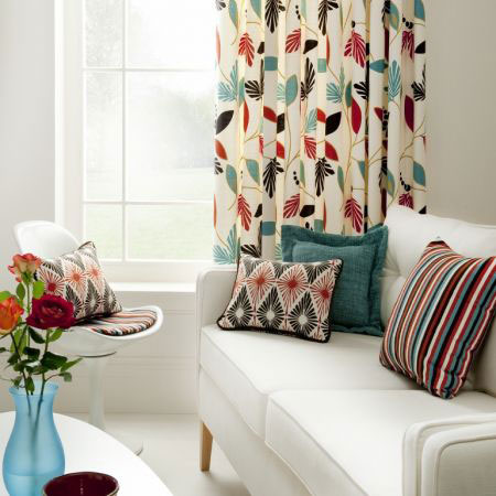 Ambient Florica realizat din: draperie Madelena , 100% bumbac, 30 euro + TVA/ ml; tapiserie scaun Rosalind, 100 % bumbac; 30 euro + TVA/ ml; perne Madelena 35x45 cm; 43 euro + TVA/ buc; perna Rosalind 60x60 cm; 95 euro + TVA/ buc; perna Lorenza, 40x40 cm - 95 euro + TVA/ buc.In exclusivitate prin Interior Store