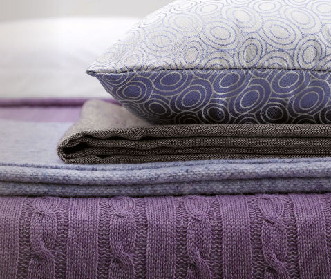 Coperte Viola - pled tricotat, cu model, Doimo Decor, pe nuante violet, realizat manual, din lana.Morphoza-atelier de interioare