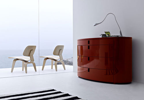 Polare - Comoda ce face parte din colectia Polare; realizata din MDF lacuit lucios cu finisaje rosu aprins. Cele patru sertare, cu dimensiuni diferite ofera spatii pentru depozitare ample. Formele perfecte ale pieselor Polare stau la baza elegantei colectiei.In exclusivitate prin Interior Store.