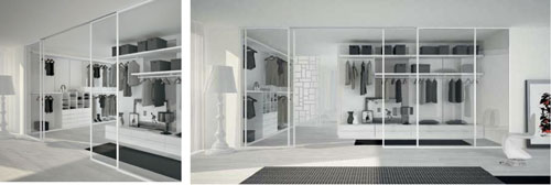 Extralab - dressing "walk in", Dall'Agnese, cu usi glisante din sticla.Morphoza-atelier de interioare